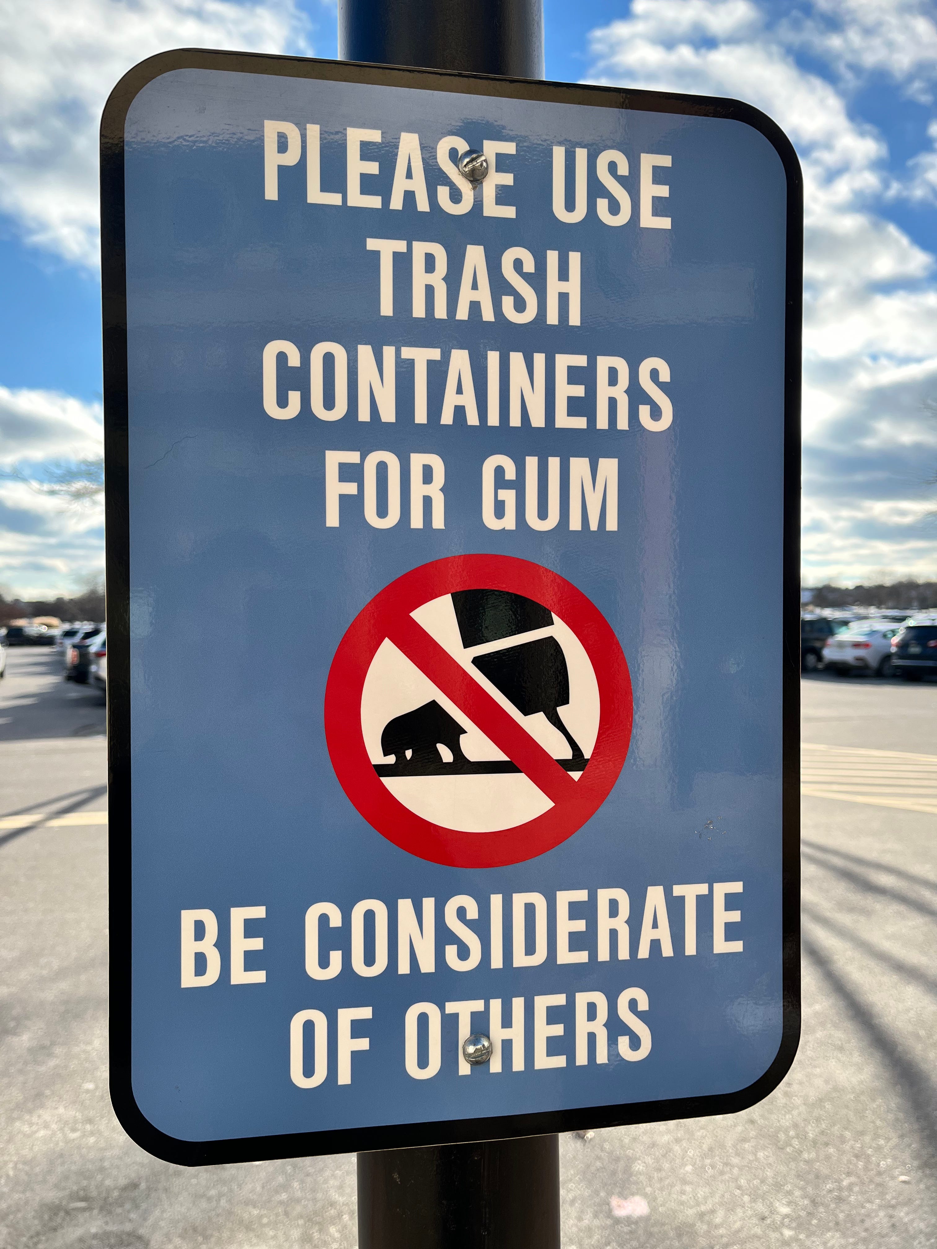 As I was leaving the mall recently, a sign caught my eye and made me laugh. It was cleverly placed on the sidewalk as I stepped off the curb to find my car. The sign encouraged people to be considerate by using the nearby trash cans for their chewed gum instead of tossing it on the ground like a sticky Frisbee. The addition of a silhouette of a shoe squishing gum underneath added a humorous yet impactful visual to its message.